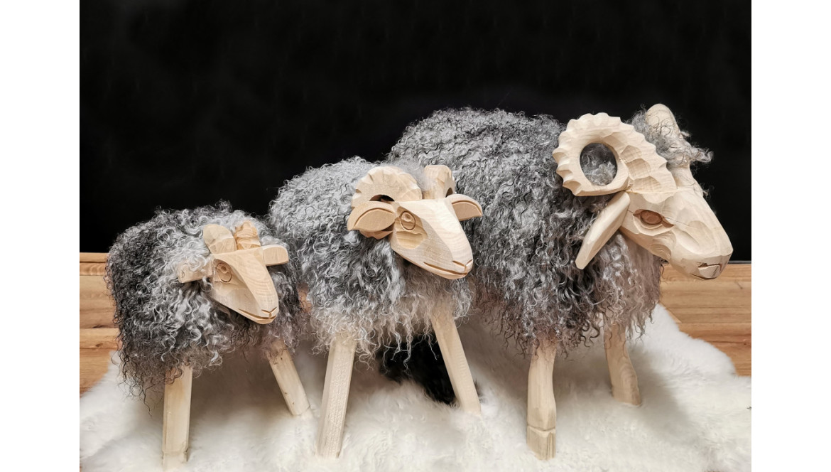 Våre utskårne værer er den perfekte dekorasjonen! Håndgraverte trepynt og luftig naturlig lammeskinn gjør dem eksepsjonelt vakre og unike!